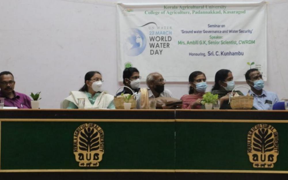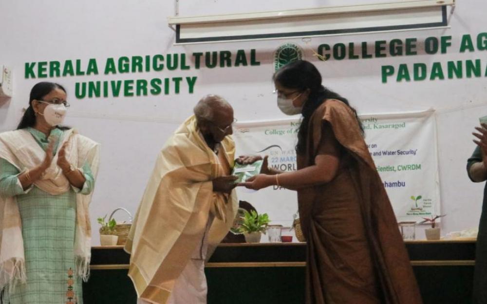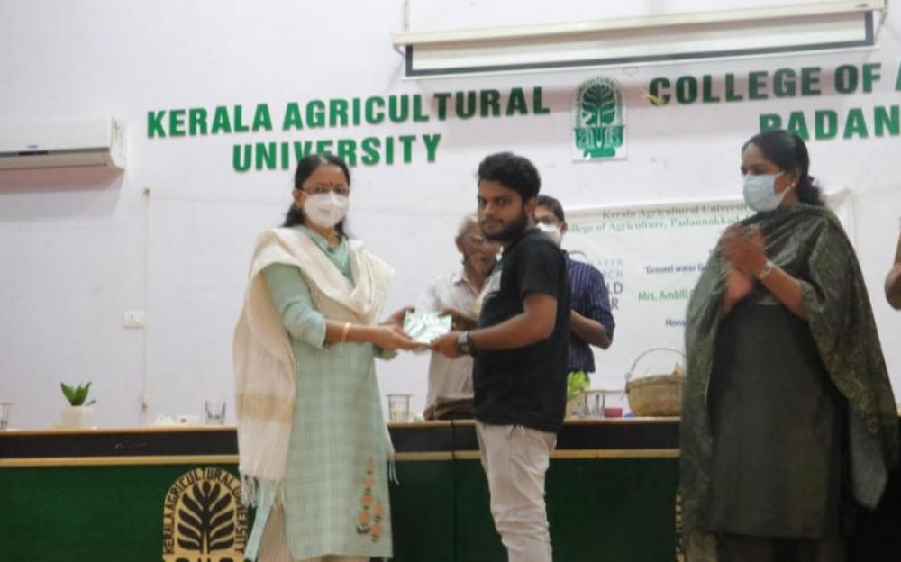 Department of Agronomy in association with college students union, with the financial  support of ‘Haritha Kerala Mission’ has celebrated the ‘World Water Day’ at College of Agriculture Padannakkad. The inaugural session was presided by Dr.R.Sujatha, ADR Coconut Mission and inaugurated by Dr.Mini.P.K Dean CoA Padannakkad. Specially Invited guest Sri.Kunhambu(who has created more than 1000 Surangams(Horizontal Wells) in the northern region of Kasargod District to solve the water crisis) was honored by the Dean Dr. Mini.P.K.