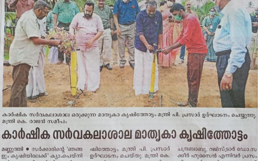 " ഞങ്ങളും കൃഷിയിലേക്ക് " ; കേരള കാർഷിക സർവകലാശാല മാതൃകാകൃഷിത്തോട്ടം ഒരുക്കുന്നു - at Agricultural Research Station - ARS, Mannuthy #Ars Mannuthy Prev അടുത്തത് Institution: Agricultural Research Station, Mannuthy