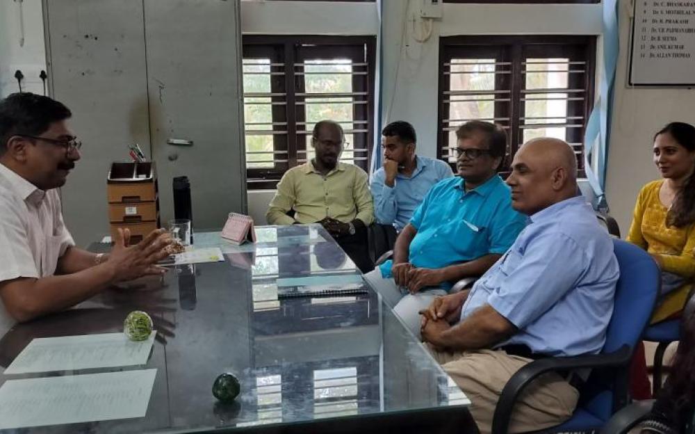 The Department of Agricultural Extension Education at the College of Agriculture, Vellayani, organized an Academic Interaction event on 11-9-2023, featuring Dr. Mahesh Jaishi, an international scientist and the Director of the Directorate of Extension at the Institute of Agriculture and Animal Sciences, Tribhuwan University, Nepal. During the event, Dr. Jaishi discussed overseas opportunities in agricultural education, provided valuable insights into Nepal's agricultural education system, and highlighted the current agricultural landscape in Nepal. He emphasized the importance of fostering academic and research collaborations between KAU and Tribhuwan University. The event was coordinated by Dr. Esakkimuthu M., an Assistant Professor and the organizing secretary of the Agricultural Research Forum- Social Sciences. Dr. Allan Thomas, Professor and the Head of Agricultural Extension Education, as well as Sri. Paul Lazarus, Associate Professor and the Head of Agricultural Economics felicitated the function. Esteemed faculty members from the Social Sciences Division also attended the function.