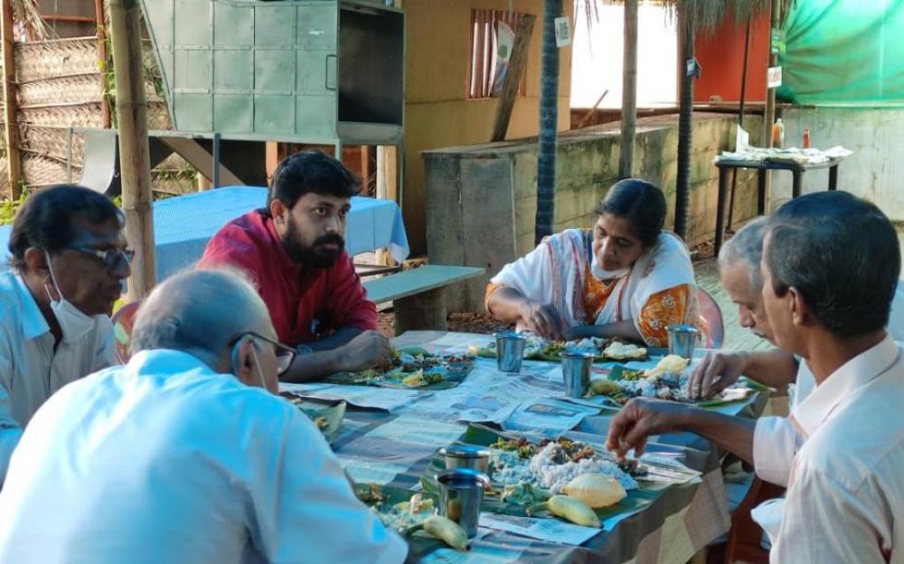 On the eve of Uthradam Hon. Kalliassery MLA , Sri. M. Vijin visited Food security Army centre established at Cherukunnu ,Thavam under RKI project of RARS, Pilicode along with Malabar Kaipad farmers' society directors , and tasted our products including sadya made using Kaipad rice. Distributed kit having the centre products viz., Kaipad rice, Avil, Puttupodi, Pathal podi , Ariyunda, kaipad rice sweet gruel and various organic inputs . Also distributed kit of planting materials consisting 10 leafy vegetables needed for kitchen garden and kit of 10 medicinal plants to be grown in home garden.