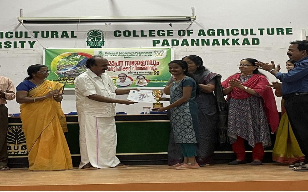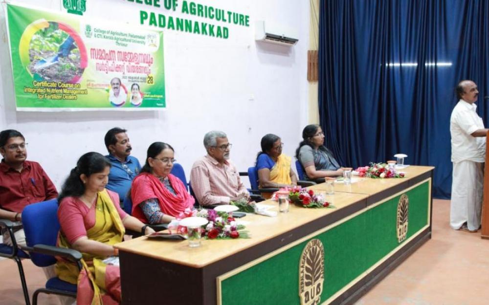 Hon'ble Kanhangad MLA Sri. E. Chandrasekharan inaugurated the valedictory function of 15 days INM training programme for fertilizer dealers held at College of Agriculture Padannakkad on 28.10.2022. The programme was presided over by Municipal Councillor Smt. Sobha V.V. Certificate distribution was done by Hon. MLA to fertilizer dealers who have successfully completed the course on INM. Price distribution to the winners of College Arts competitions ‘Aattom 2022’ was also done by Hon'ble MLA. Dr. Mini. P. K, Dean, College of Agriculture, Padannakkad welcomed the guests. Felicitations were given by, Dr. Sujatha R, ADR, Coconut Mission, Dr. K.M. Sreekumar, Professor & Head (Dept. of Entomology), Mr. Deepesh P. K, Section Officer and Sri. Surendran P. V, Farm Superintendent. Dr. Sulaja O.R, Course Convenor, proposed vote of thanks.