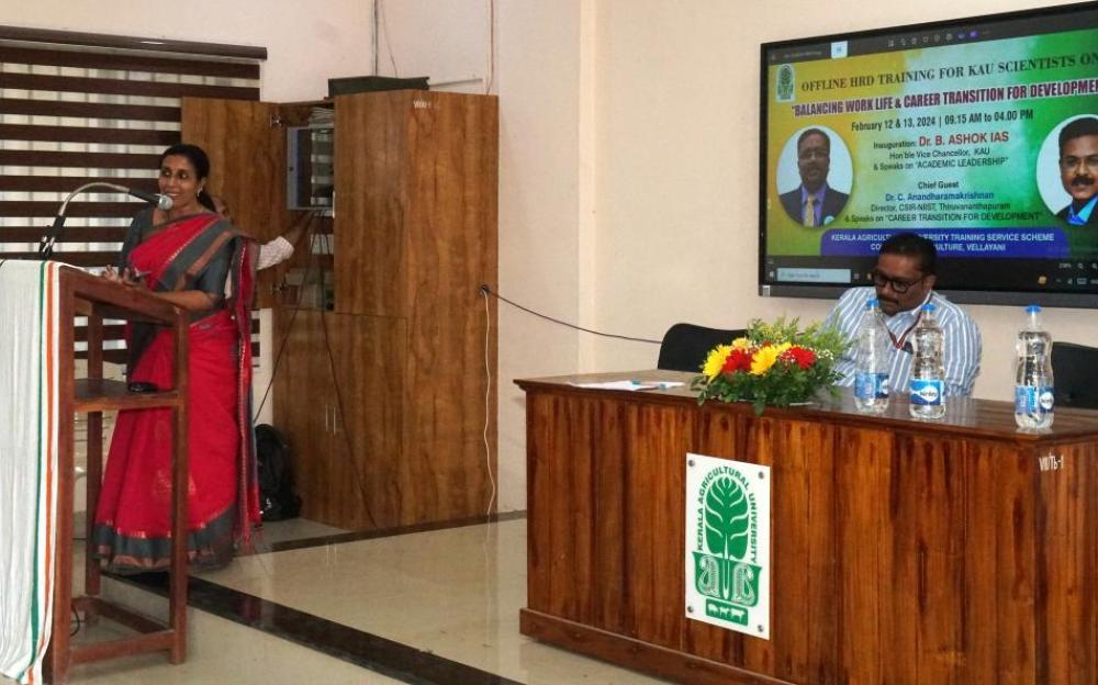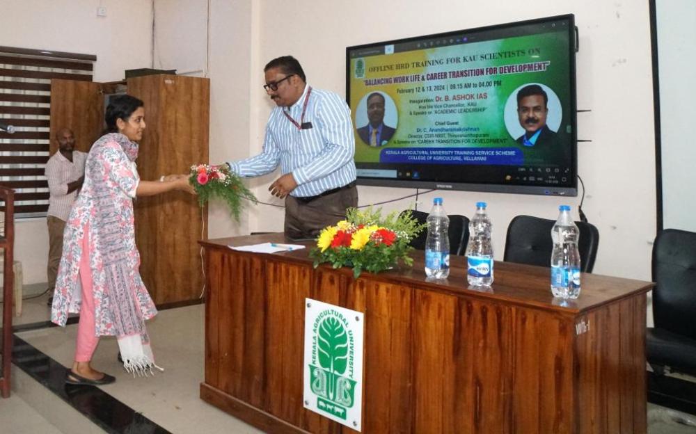 TSS Vellayani had organized a two-day HRD training on 'Balancing Work Life and Career Transition for Development' for the scientists of KAU from 12.2.2024 to 13.2.2024. Hon'ble Vice Chancellor Dr.B.Ashok IAS inaugurated the programme and shared his insights on 'Academic Leadership'.
